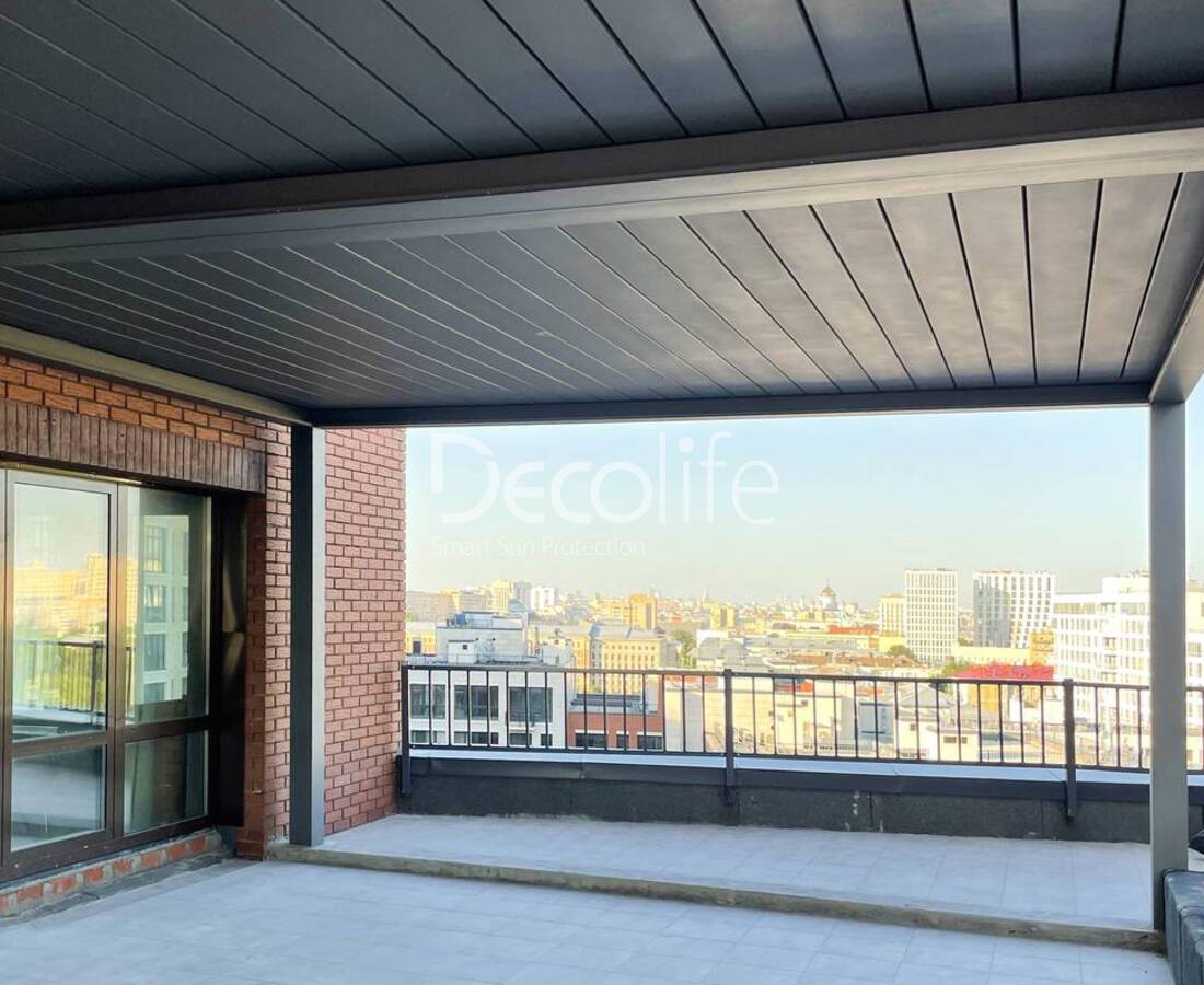 Пергола биоклиматическая Decolife В700-20C + Раздвижное остекление S500 + Вертикальная система Zip 100 - г. Истра