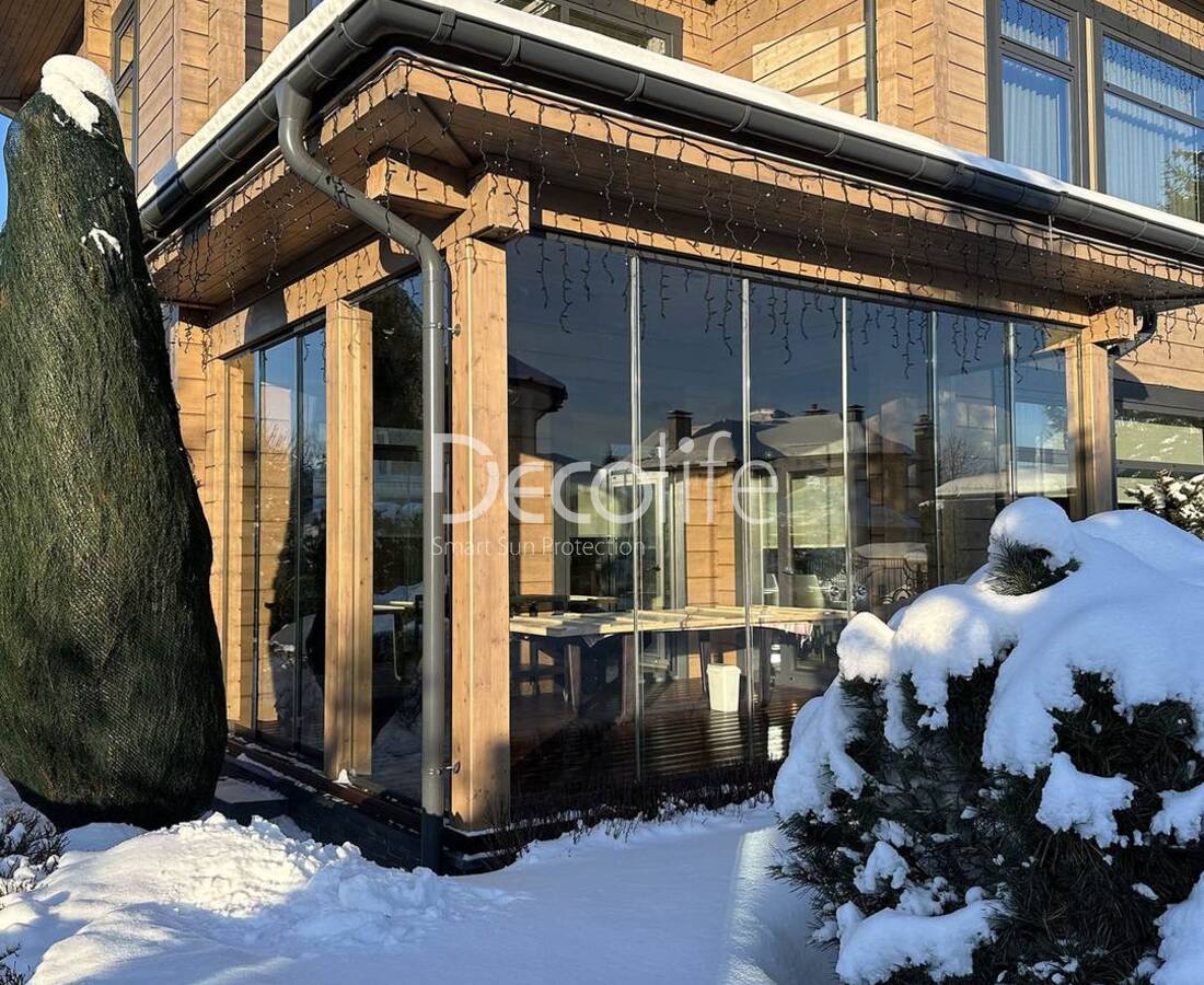 Пергола Decolife B600 PIR + Фасадные жалюзи FZ-44 + Гильотинное W500 и раздвижное S200 остекление - г. Минск