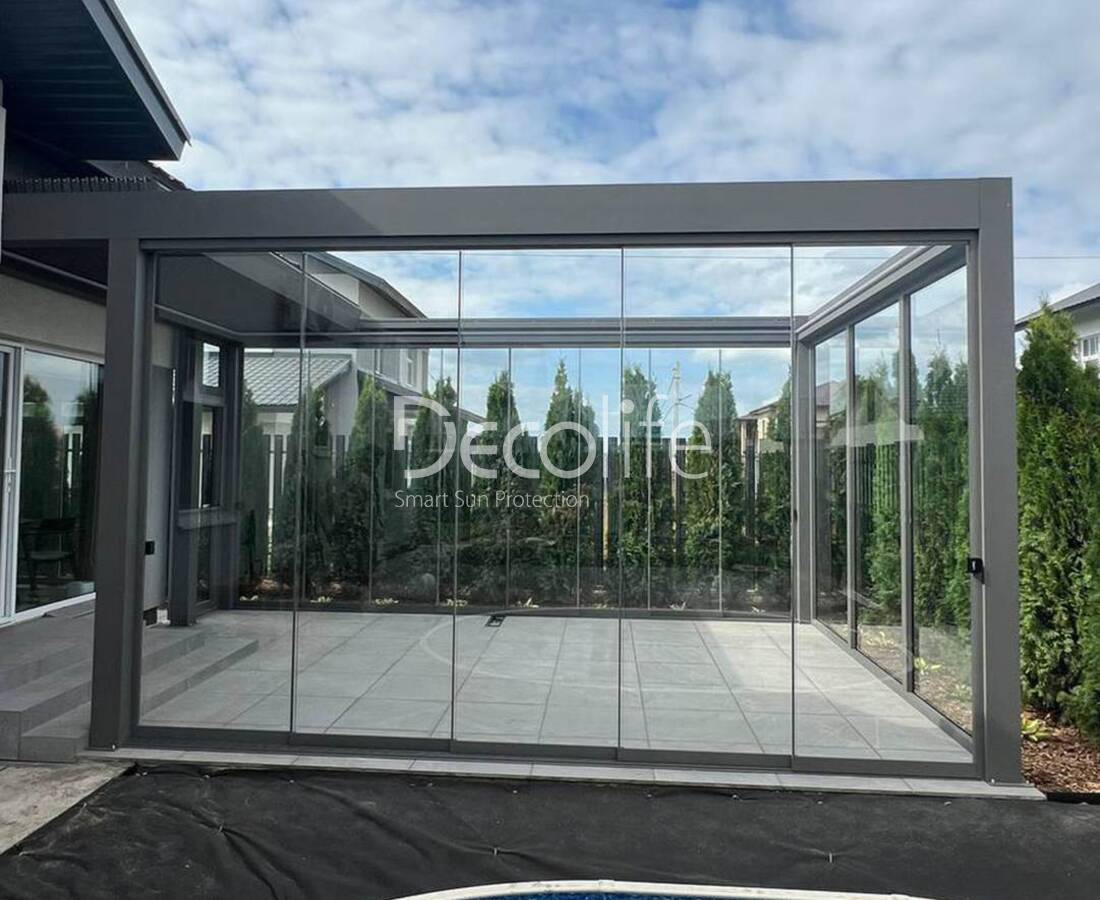 Пергола Decolife B600 PIR + Раздвижное остекление S100, реализовано партнером "TENT VERTEX" - г. Алматы